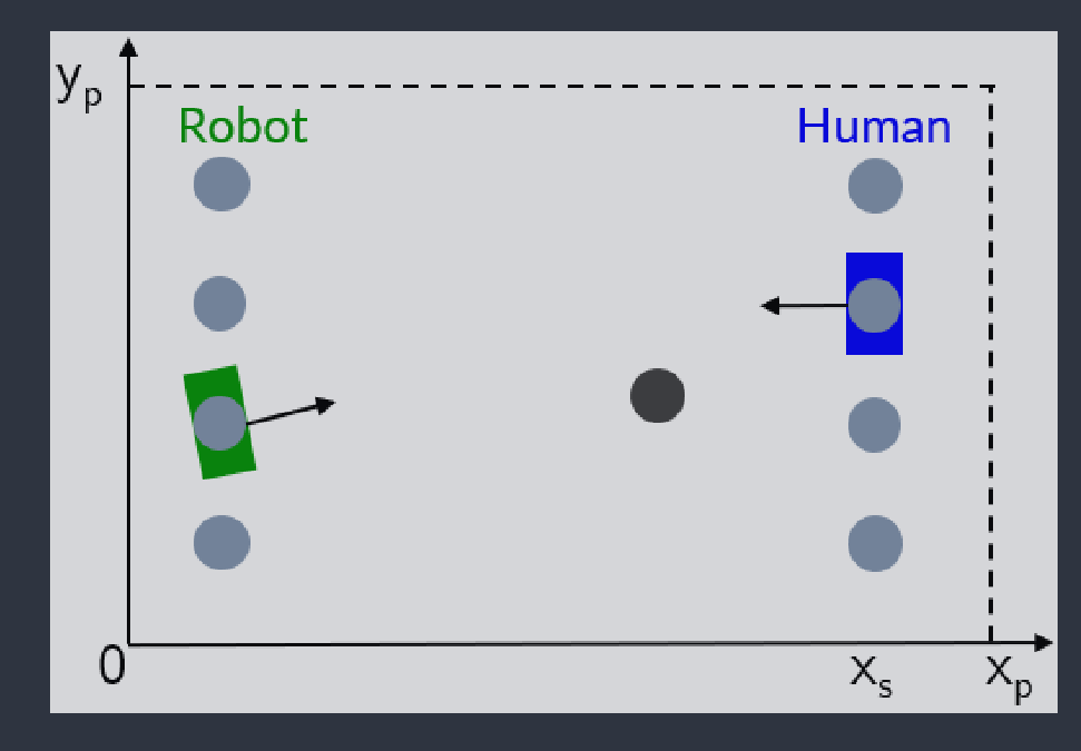Like in other articles, a frequent environment used to test human models is the soccer pass. The agent has to learn the human pass behavior, more or less power, varying angles, etc.